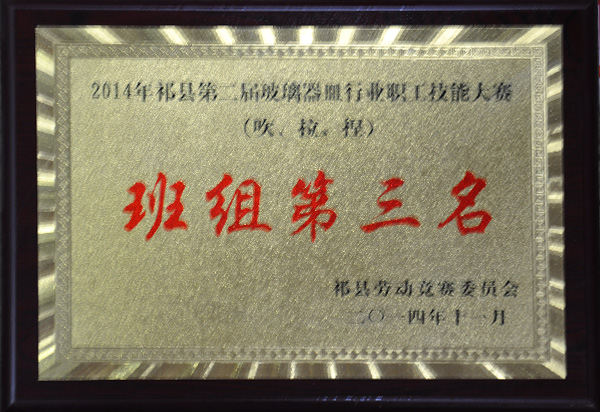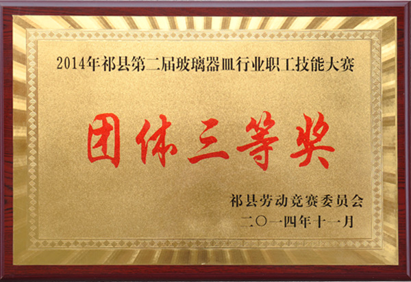 2014年被“中國日用玻璃協會授予高腳帝王杯、公爵杯榮譽稱號”